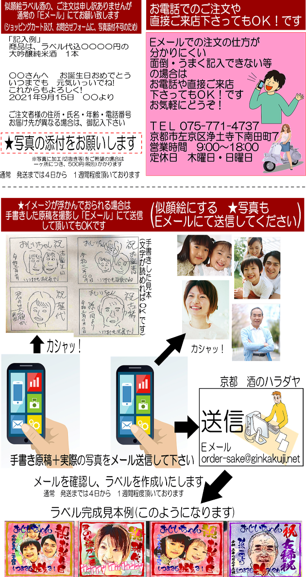 オリジナルラベルのお酒 京都 哲学の道 ハラダヤは、世界でたった一つの贈り物を丁寧に作成いたします